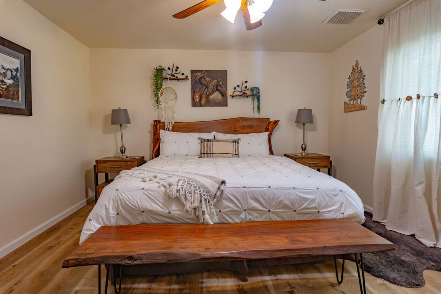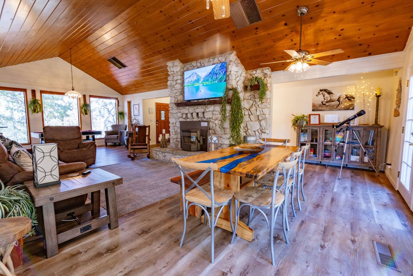 In addition to the below information please scroll down & read the RULES. 📺As the case with most rentals we only have a smart TV and NO cable so don't forget your passwords to log into your accounts. *No Smoking or Vaping in or around the house! No fires! Violation will result in a $1,000- fine and you will forfeit your stay. *You may be greeted by the neighborhood dogs however if this concerns you please let me know & I'll have the owner keep them pinned up. *Wi-Fi may be weak or go out on occasion, we wish we had better options. (this is rare) *The thermostat is set to reasonable limits to conserve energy. *Power outages can occur without warning & we do not have a backup source of energy. We will do our best to keep you informed & comfortable if this happens. (this is rare) *We do NOT have an EV charger, Oakhurst has several locations for this. *We have active wildlife in the area, so please take a minute to educate yourself on how to handle it if you come in contact. *We recommend bringing a good supply of bug repellent for the mosquitoes in the warmer months. *This is a very well-maintained home, and we pride ourselves on keeping it a 5-star stay. This would NOT be the place for you if you want to party or ignore the rules. *Pets are welcome, but please read the rules. *Be quick about putting groceries in the fridge; otherwise, it can take hours to cool again. (This is standard for all fridges) *Now that you’ve read all the boring stuff, book your stay & get to the relaxing part. *Partial proceeds are donated to a nonprofit dedicated to preserving the wild Spanish Mustangs, Amazing Strays Rescue (saving dogs from the streets of Mexico), and conservation ambassadors.