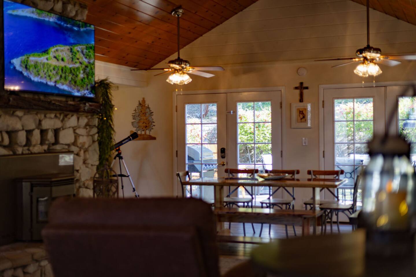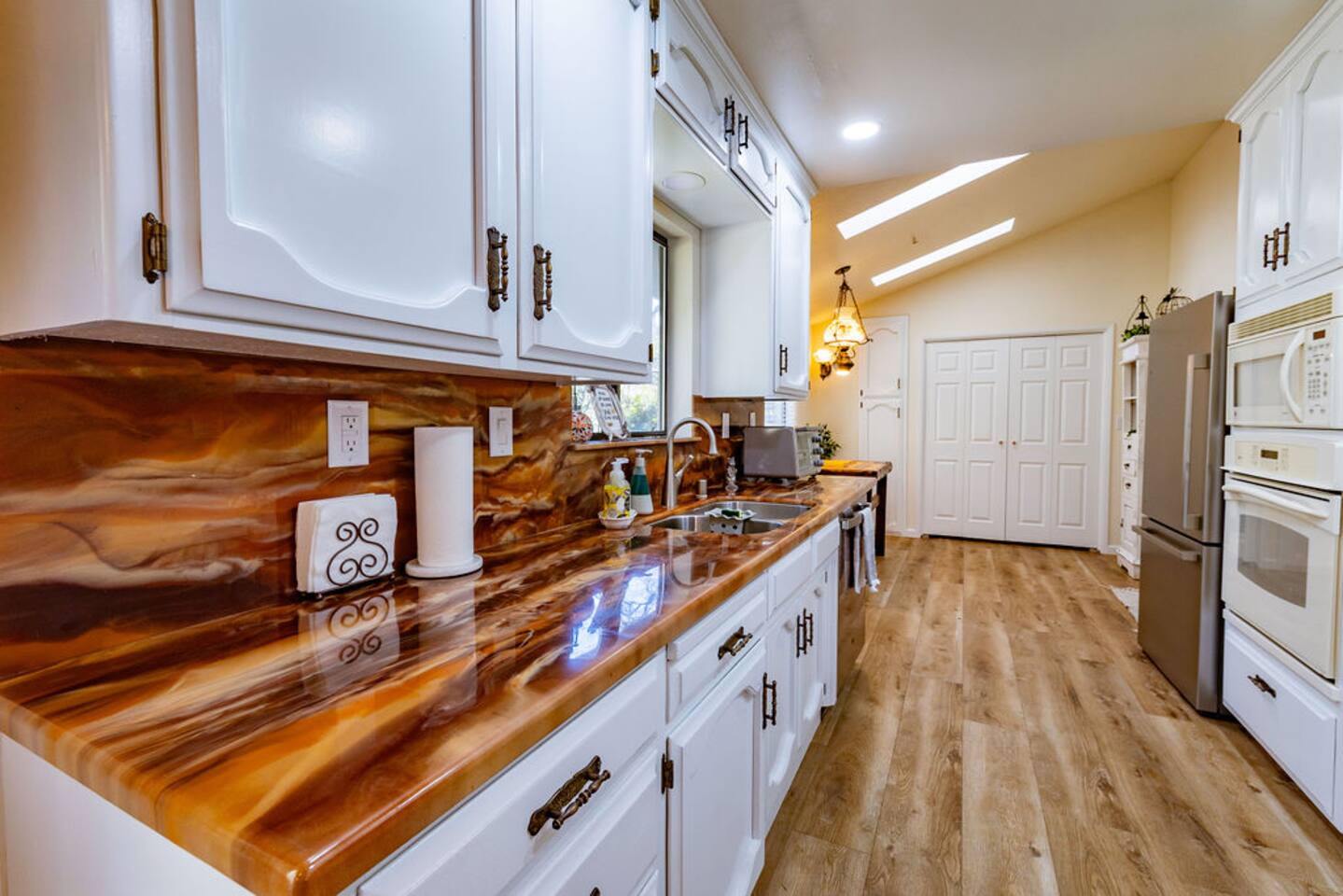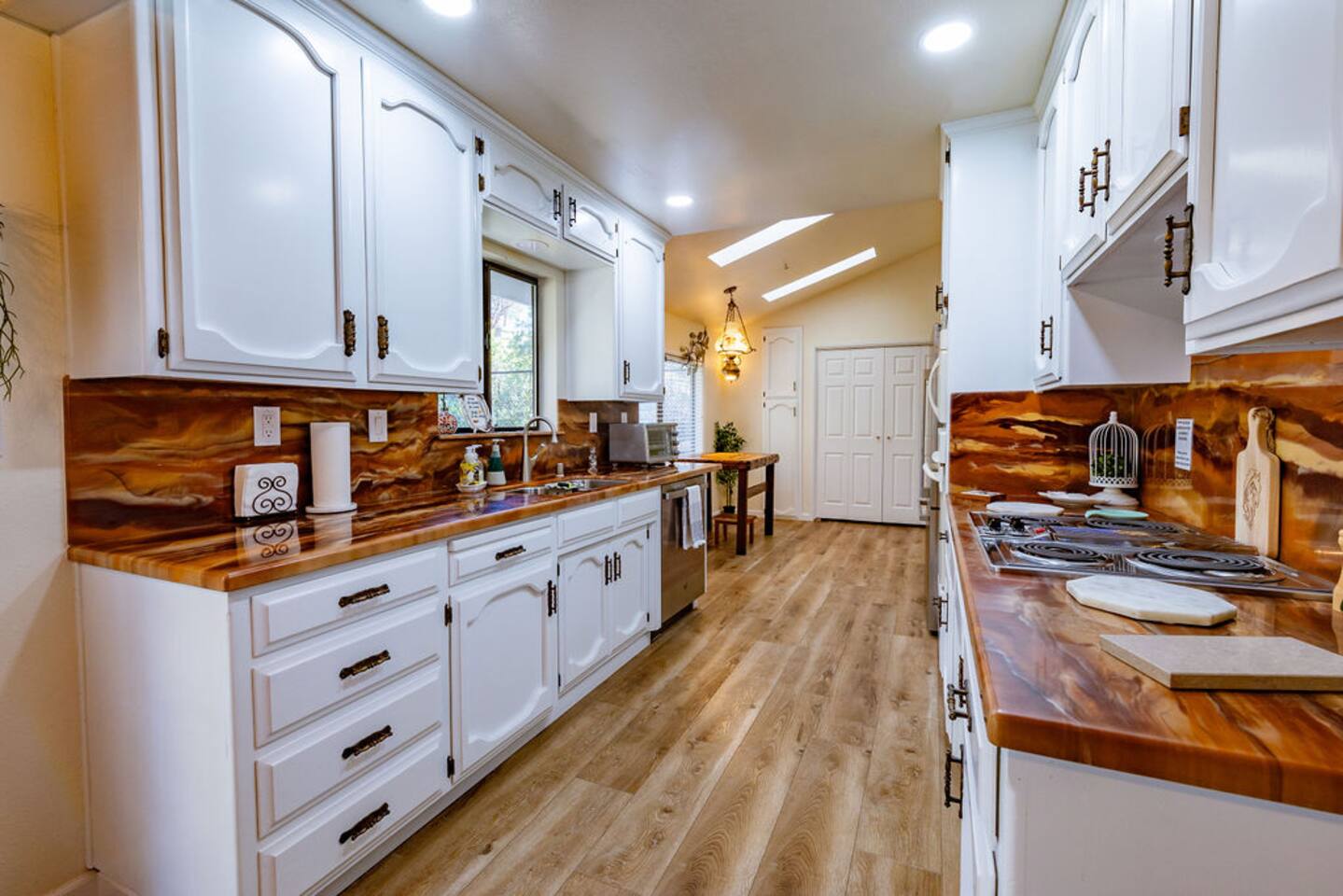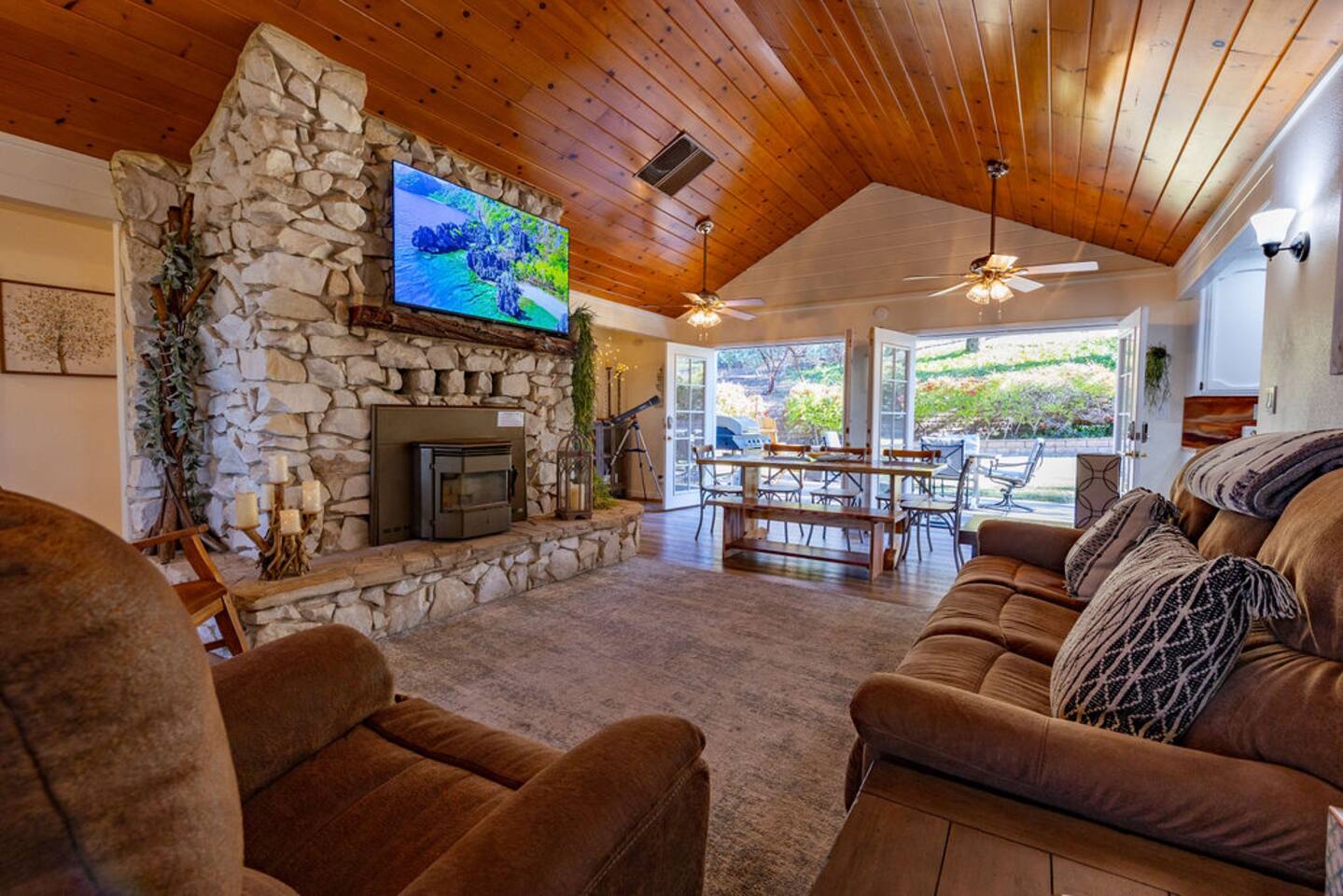 You will enjoy staying in this upscale house with a splash of country, surrounded by natural beauty. Plenty of room to spread out between the open floor plan, 4 bedrooms, and the French doors leading to the landscaped back yard. You can relax by the stove or play pool with friends. The neighborhood is lovely to walk in.
