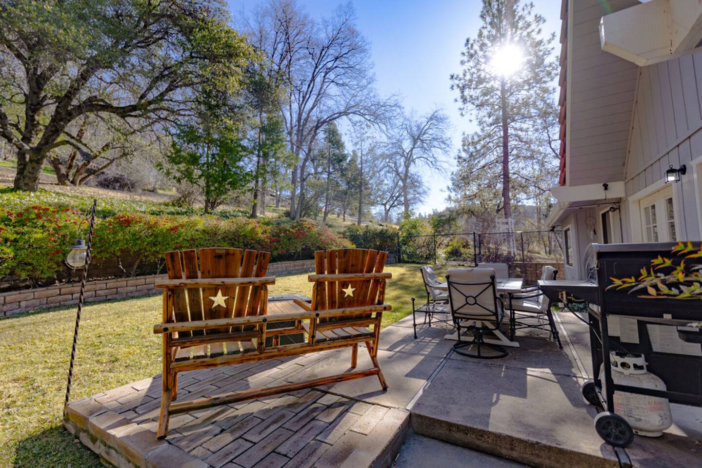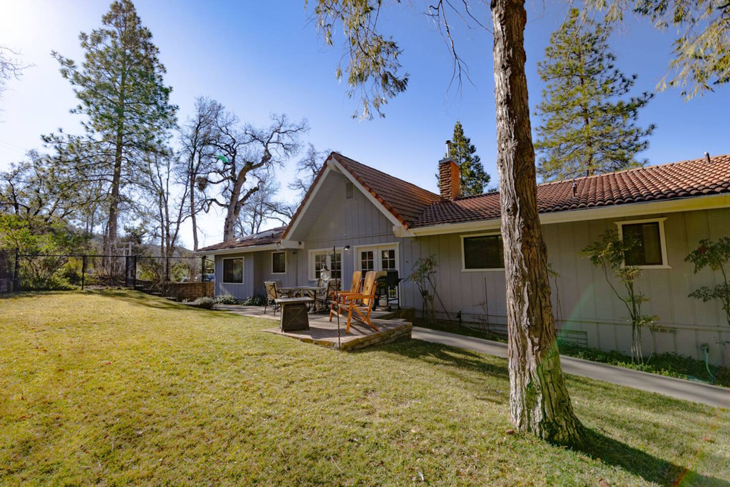 You will love this FANTASTIC LOCATION, 14 Miles to Yosemite’s South Gate, 4 Miles to Bass Lake, 4 Miles to Oakhurst. This luxury lodge is nestled on 4 acres of woods with lots of wildlife. You’ll be sure to enjoy a glass of wine or a cup of coffee on the patio sitting next the fire pit. Yes to pets with an additional fee, see pet policy. PLEASE READ THE RULES AND OTHER THINGS TO NOTE BEFORE BOOKING. This is a new listing for me but has been a Guest Favorite for years.